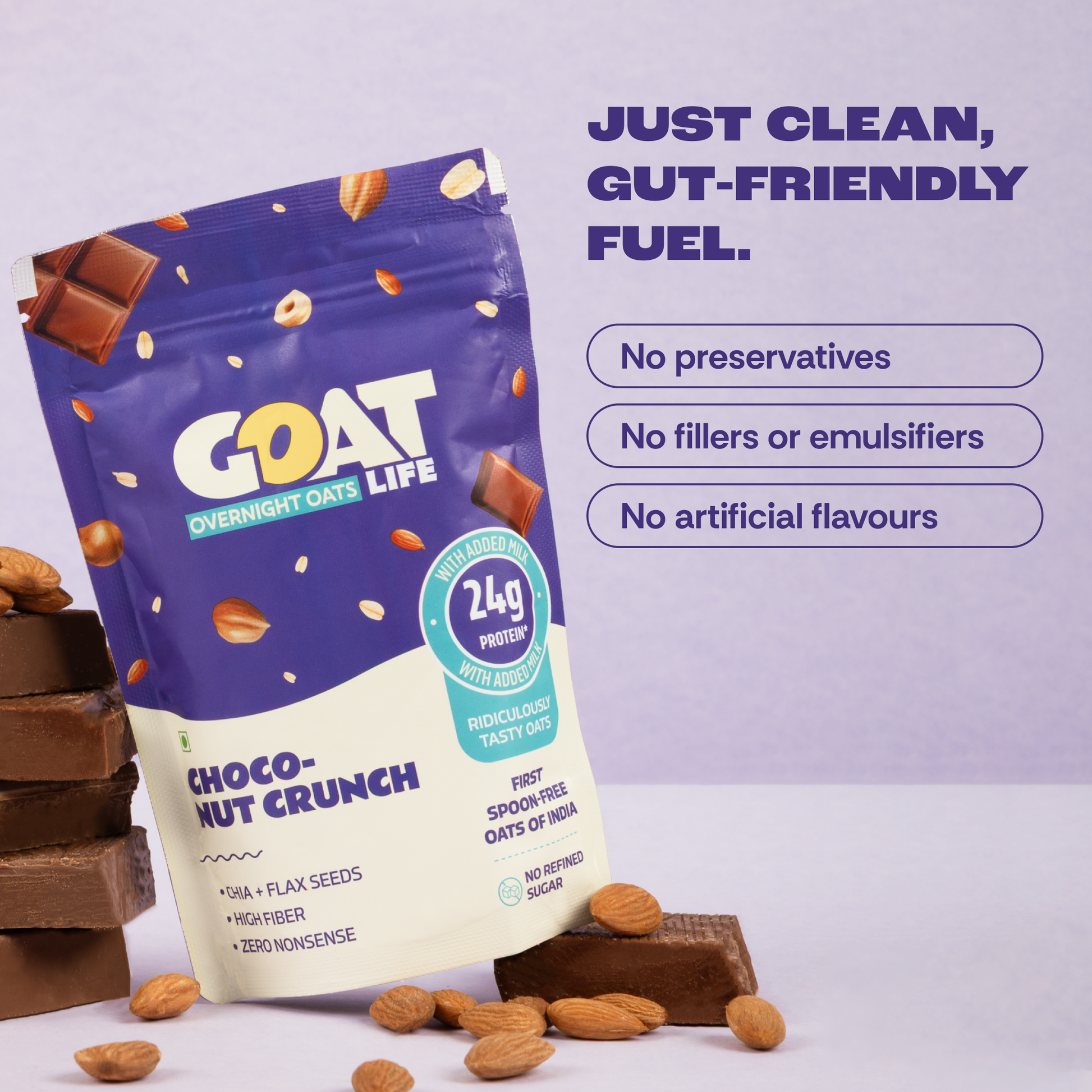 Combining the goodness of natural ingredients, the strength of protein, and the deliciousness of your favorite flavors, Goat Life is here to redefine your morning routine and fuel your day. Goat Life aren't your ordinary protein oats; they are a finely crafted blend of only the finest natural ingredients. Each spoonful combines the heartiness of rolled oats, the muscle-building power of premium whey protein sourced directly from the USA, the nutritive benefits of chia seeds and flax seeds, and the sweetness of organic jaggery. This carefully curated blend has been designed to maximize your health and fitness benefits, all while maintaining a taste that is simply divine.