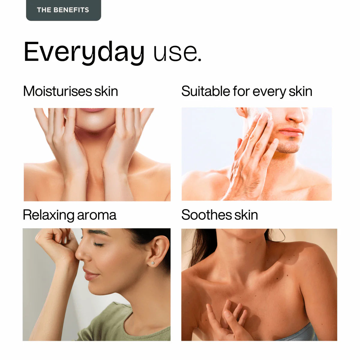 Argan Oil (Argania spinosa) – Rich in essential fatty acids that deeply nourish & protect the skin.