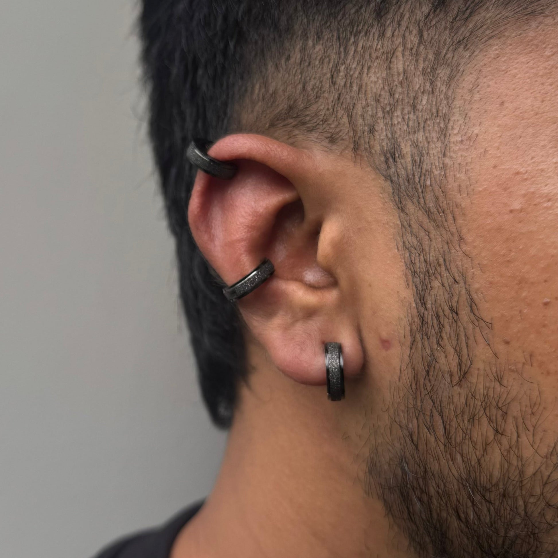 FROSTED PRESSING HOOP/ CUFF (BLACK NON - PIERCED)