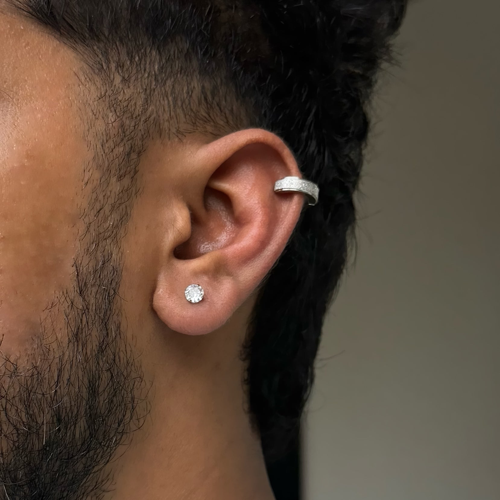 FROSTED PRESSING HOOP/ CUFF (SILVER NON - PIERCED)
