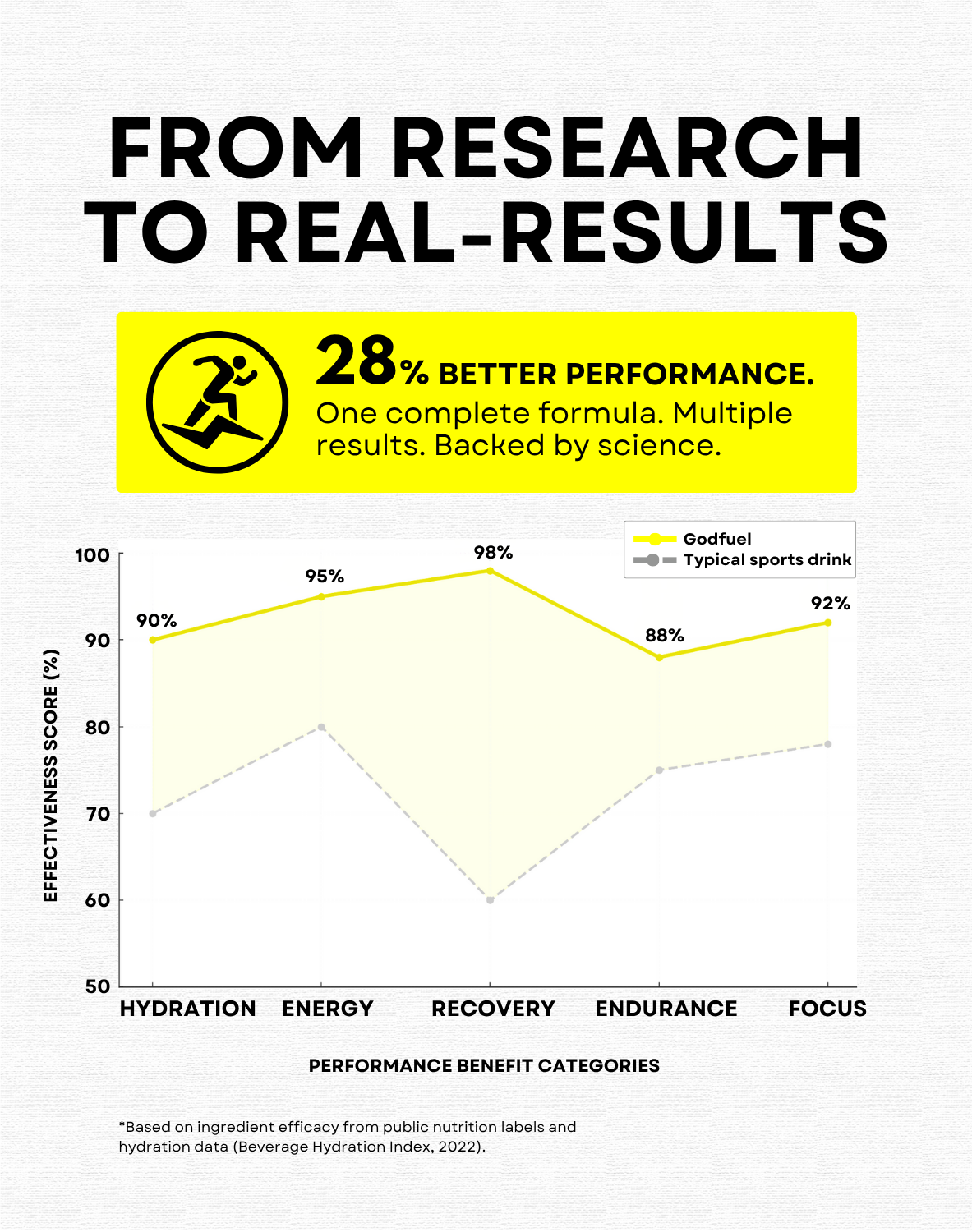 Godfuel (30 servings) is a complete hydration + performance drink with electrolytes, BCAAs, fast carbs, caffeine, vitamins, and recovery boosters. No sugar. Just clean fuel.