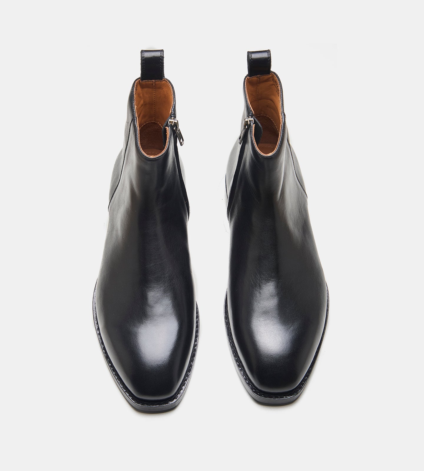 Handwelted zipper Chelsea boots with a sleek chisel-toe, YKK zippers, and nitrile rubber soles. Classic, durable, and perfect for formal or casual wear.