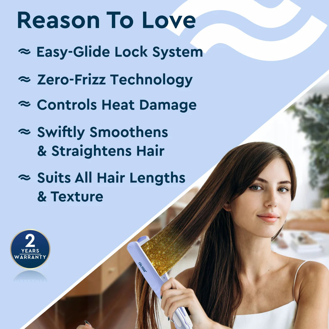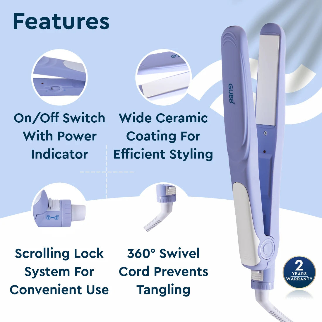 Achieve perfectly styled tresses with the GUBB Hair Straightener TS-557. This hair straightener comes with an easy lock system and a 360 degree swivel cord to prevent tangling, and promises fuss-free, reduced frizz hair.