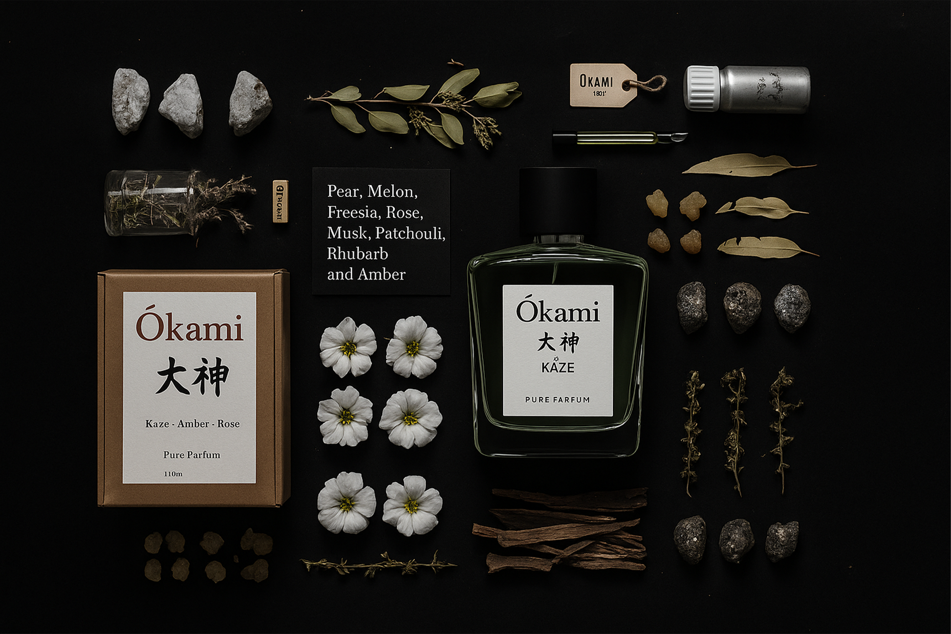 Kaze – The Wind is a weightless, airy blend of citrus, green tea, and driftwood. Crisp, uplifting, and quietly powerful.