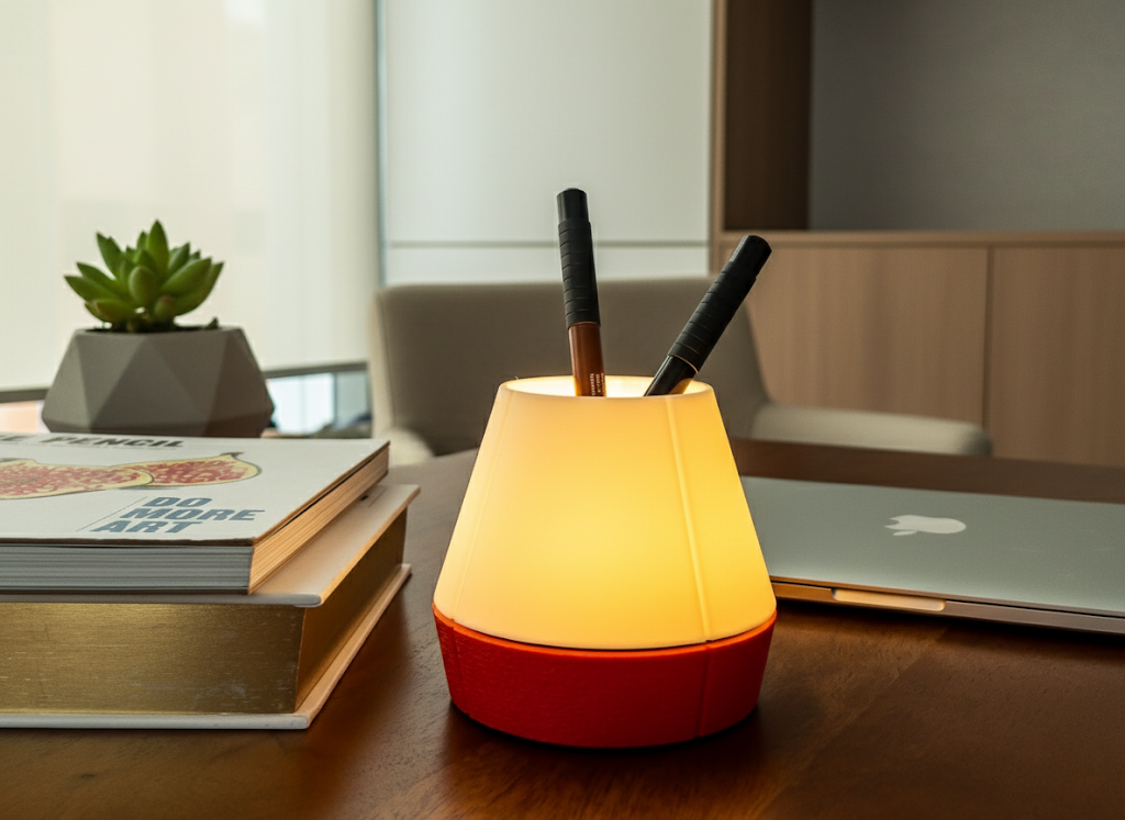 A compact portable lamp incorporating a versatile holder at the top with sleek Scandinavian design, features Bluetooth mesh for dimming, scene, and voice control via the Smart Life app.