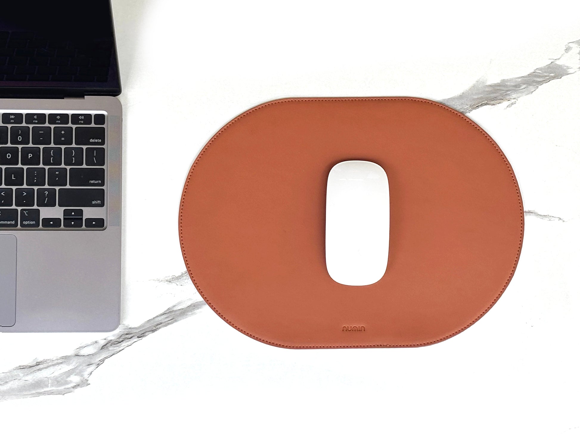 Upgrade your desk setup with this premium 12 x 9-inch capsule-shaped mousepad, made from ultra-soft, padded vegan leather. Reversible with warm tan on one side and calming blue on the other, it combines style and versatility. Water-resistant and finished with stitched edges for added durability, its cushioned surface ensures smooth tracking and all-day comfort. Whether for work or gaming, this elegant mousepad brings ergonomic support and refined design to any workspace.