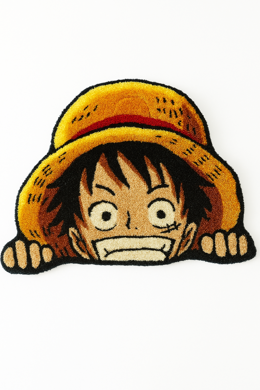 Introduce a playful twist to your décor with our Luffy Peeking rug. Featuring the Straw Hat Pirate captain peeking out with his signature grin, it brings a fun, adventurous touch to your room.