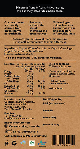 With a high cacao percentage and minimal sugar, it’s all about exploring the personality and flavour of the beans. This bar is for the lover of pure dark chocolate and exhibits fruity and floral flavour notes. We worked closely with our farmers in the post-harvest processing of the cacao beans to develop these flavours, resulting in a truly unique and blissful signature chocolate!