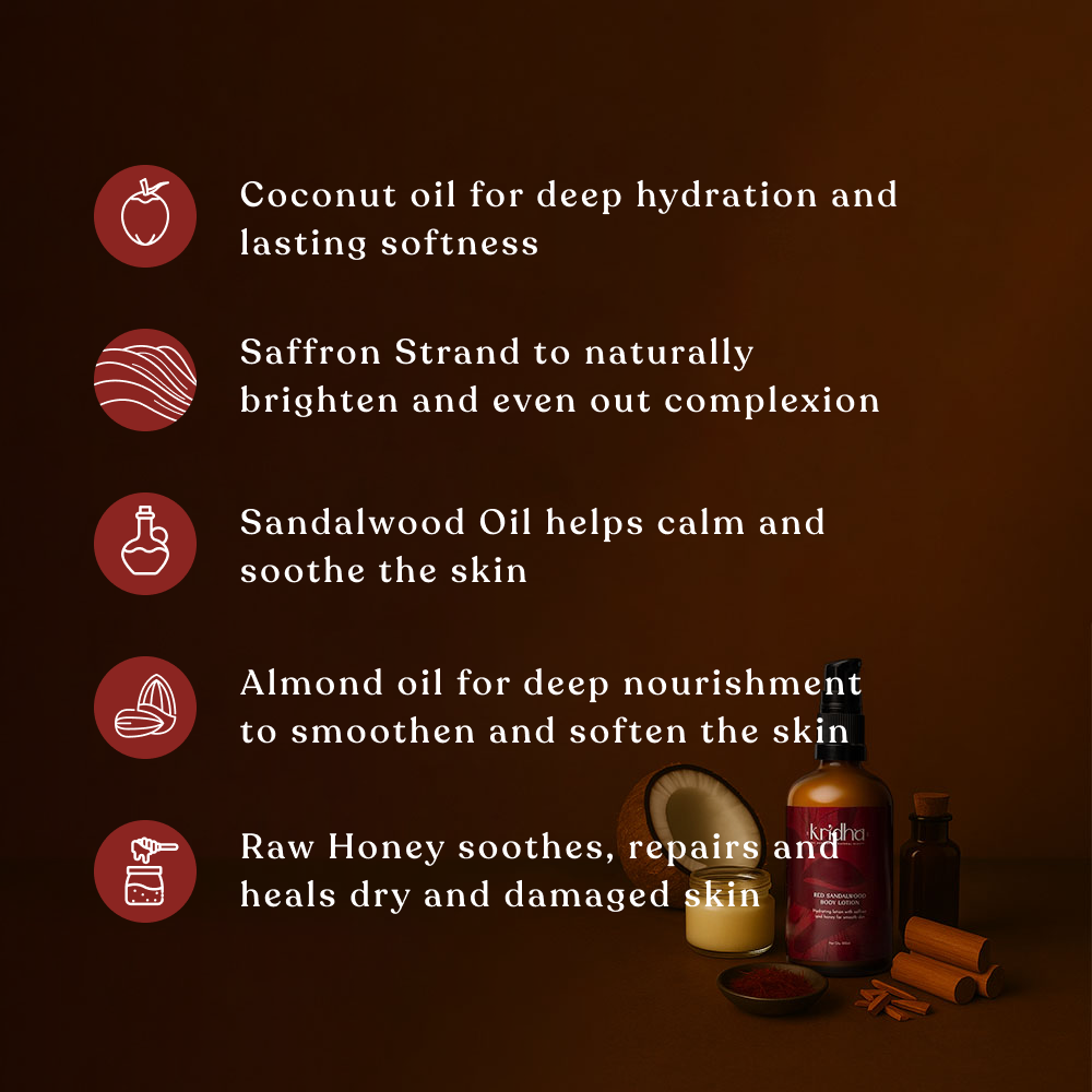 Kridha Red Sandalwood Body Lotion – Deep Hydration & Radiance for Glowing Skin