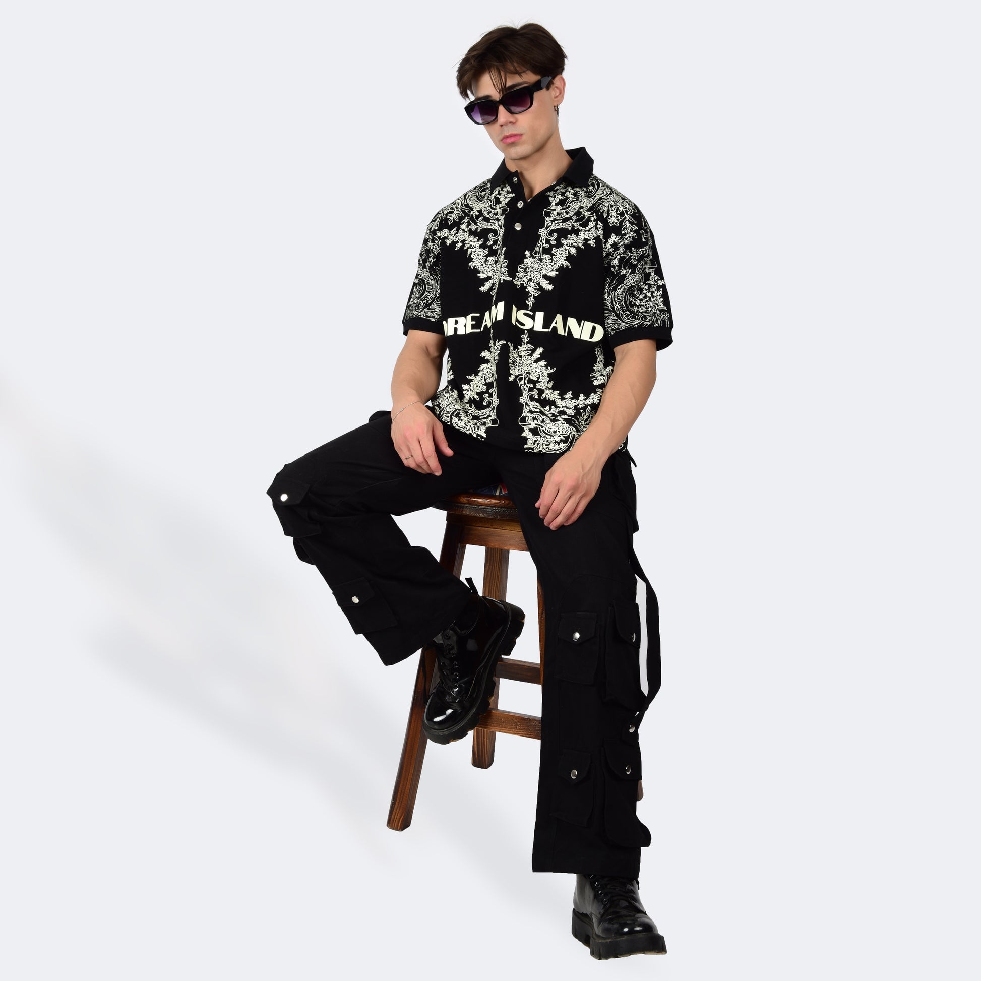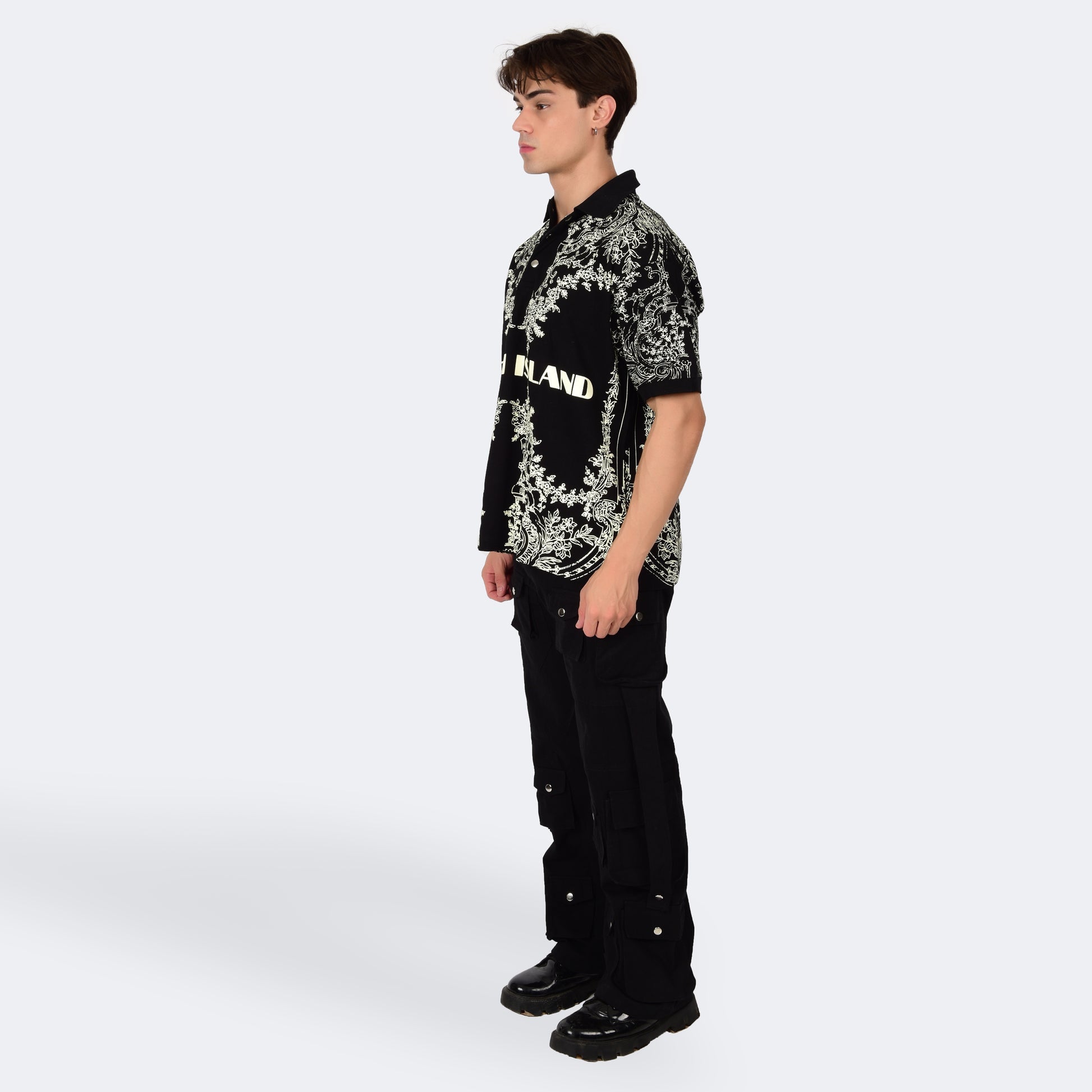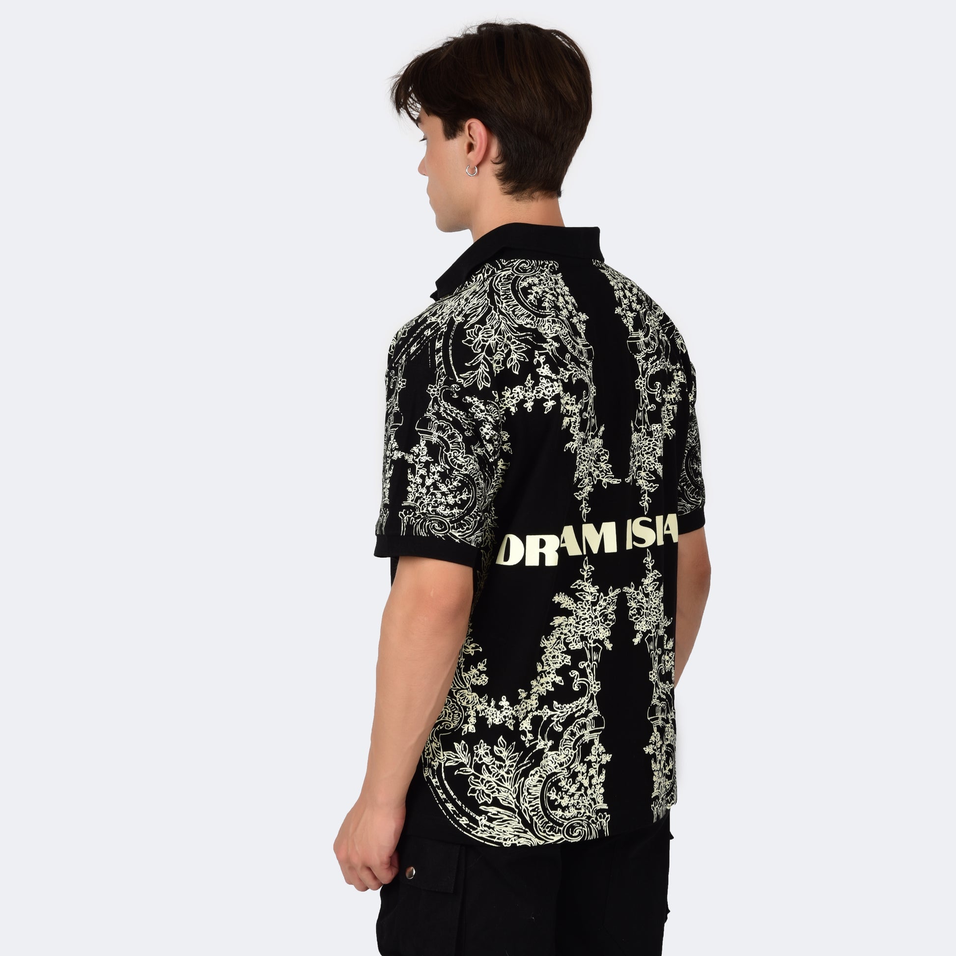 Introducing the Renaissance polo, a slightly oversized fit shirt, crafted from a 100% cotton fabric. The shirt has an open polo collar and features an all-over screen-printed design.