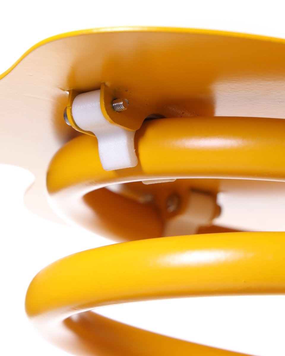 A 7 foot metal pipe bent into a bold industrial spring. Sturdy enough to hold your coffee, your books, or even you.