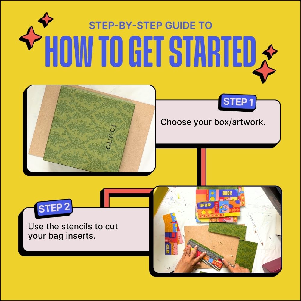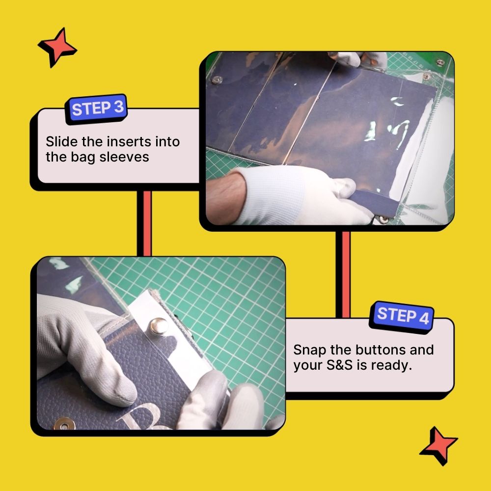 The Switch & Snap Bag Series is a one-of-a-kind DIY Product that enables you to have a new bag everyday! With this one bag, you can literally create a million different bags. Use the bag to preserve your beloved shoe boxes, turn your artwork into wearable art or turn your travel collectibles into statement piece designs. All you have to do is cut the pieces, slide them into the bag and snap the buttons in place. Get started today!
