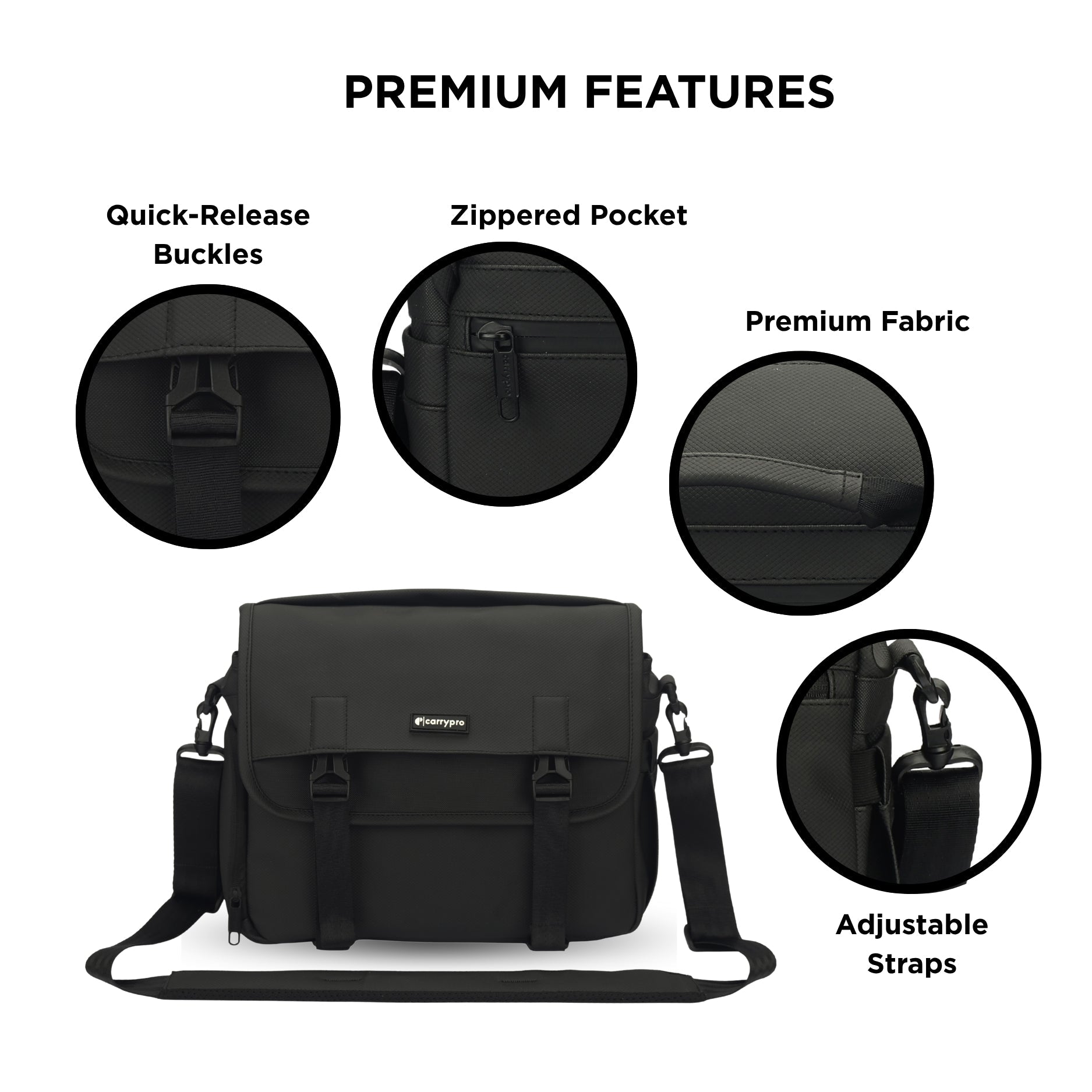 CarryPro’s Camera Sling Bag combines functionality with sleek design, built for photographers who value protection and style. Made from durable, water-proof fabric, it offers a customizable padded compartment, multiple pockets for accessories, and a comfortable adjustable strap — perfect for everyday shoots or travel.