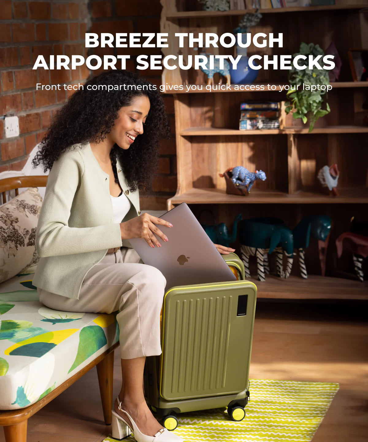 Comes with a keyless TSA lock which secures both your front and main compartments. Simply push the latch towards the numbers to unlock. Instructions to set your lock code will be inside the luggage.