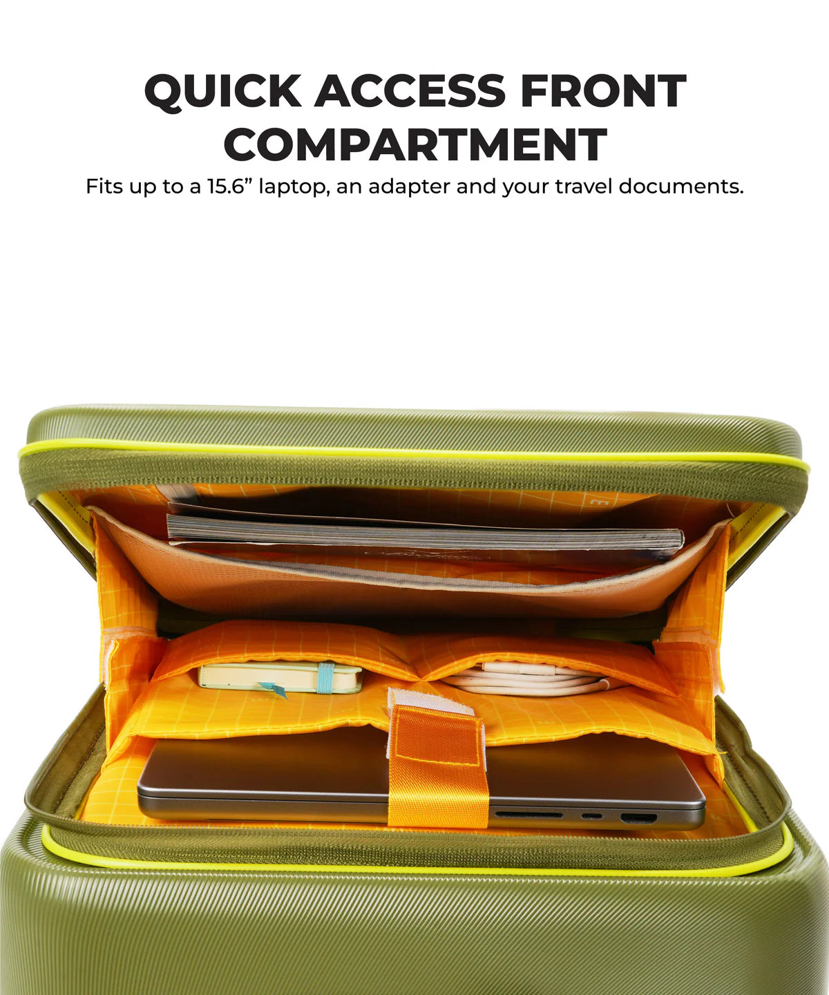 Meet the Transit Cabin Pro, designed for greater accessibility and greater transits. The front compartment gives you quick access to your tech, making airport security checks easy, breezy. Fits up to a 15.6” laptop.