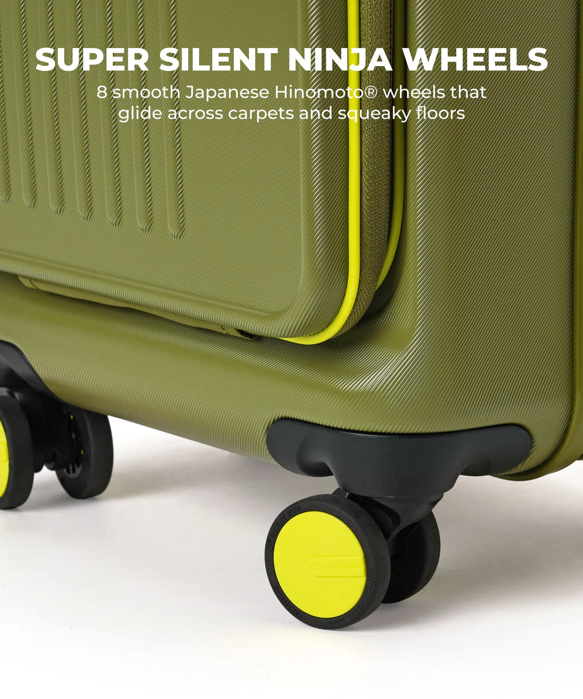 8 smooth Japanese Hinomoto wheels that glide across carpets and squeaky floors.